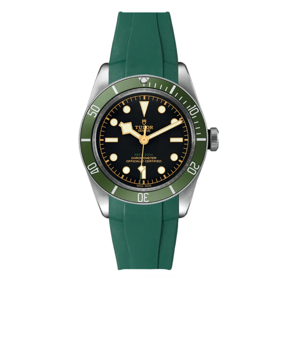 Integrated Curved End FKM Rubber Strap for Tudor Black Bay 41mm Harrods - Green (2436)