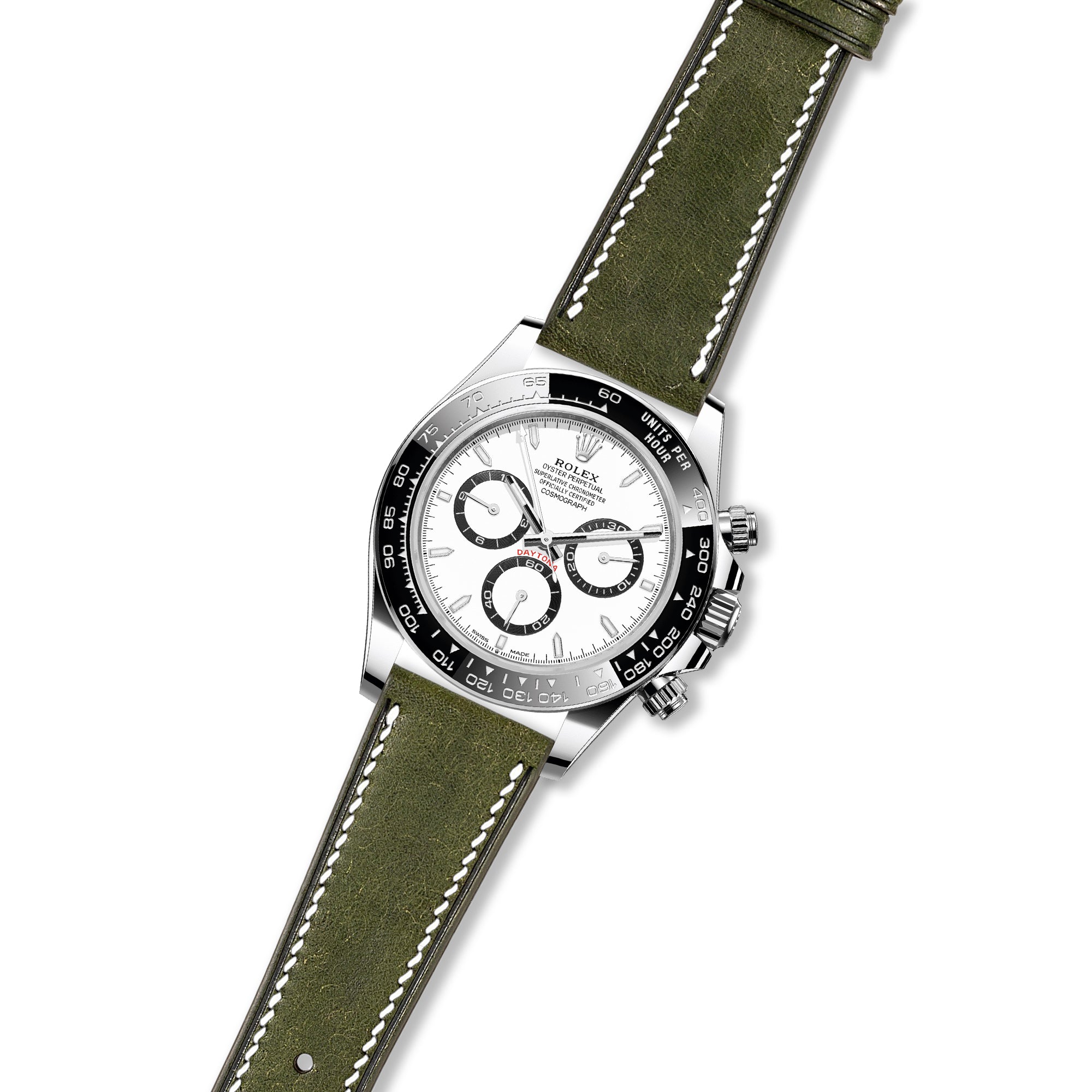Disclaimer: This strap is not produced or approved by Rolex SA. It is a third-party accessory designed to fit the Rolex Daytona Cosmograph.