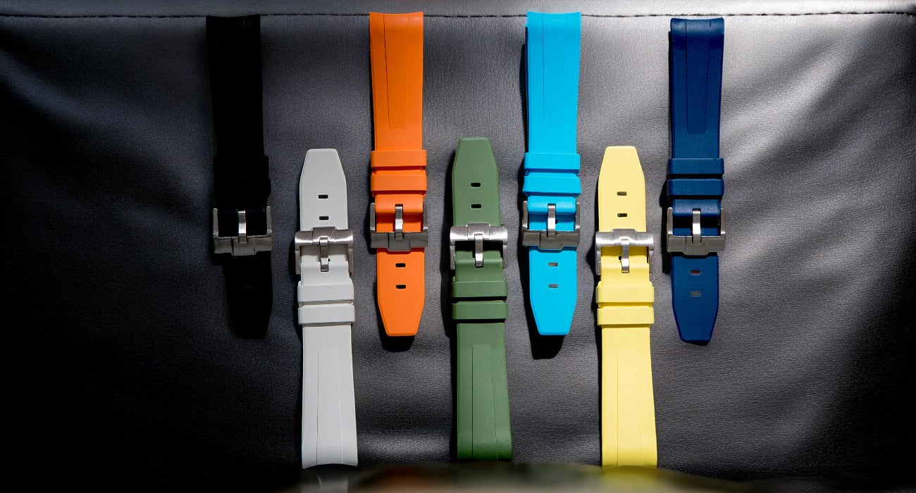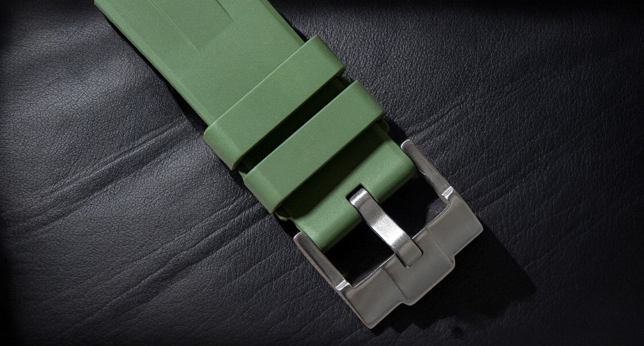 Made from FKM rubber, the highest quality rubber strap material available. FKM rubber's exceptional chemical stability translates to unparalleled durability, resilience, and colorfastness, while its resistance to aging and weathering ensures longevity. Most importantly, it is anti-dust.