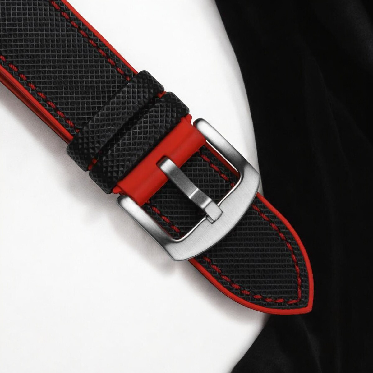 Theo Nylon & FKM Rubber Hybrid Performance Strap for Rolex Day-Date - Black Nylon Black Stitch / Black FKM Rubber (8006)