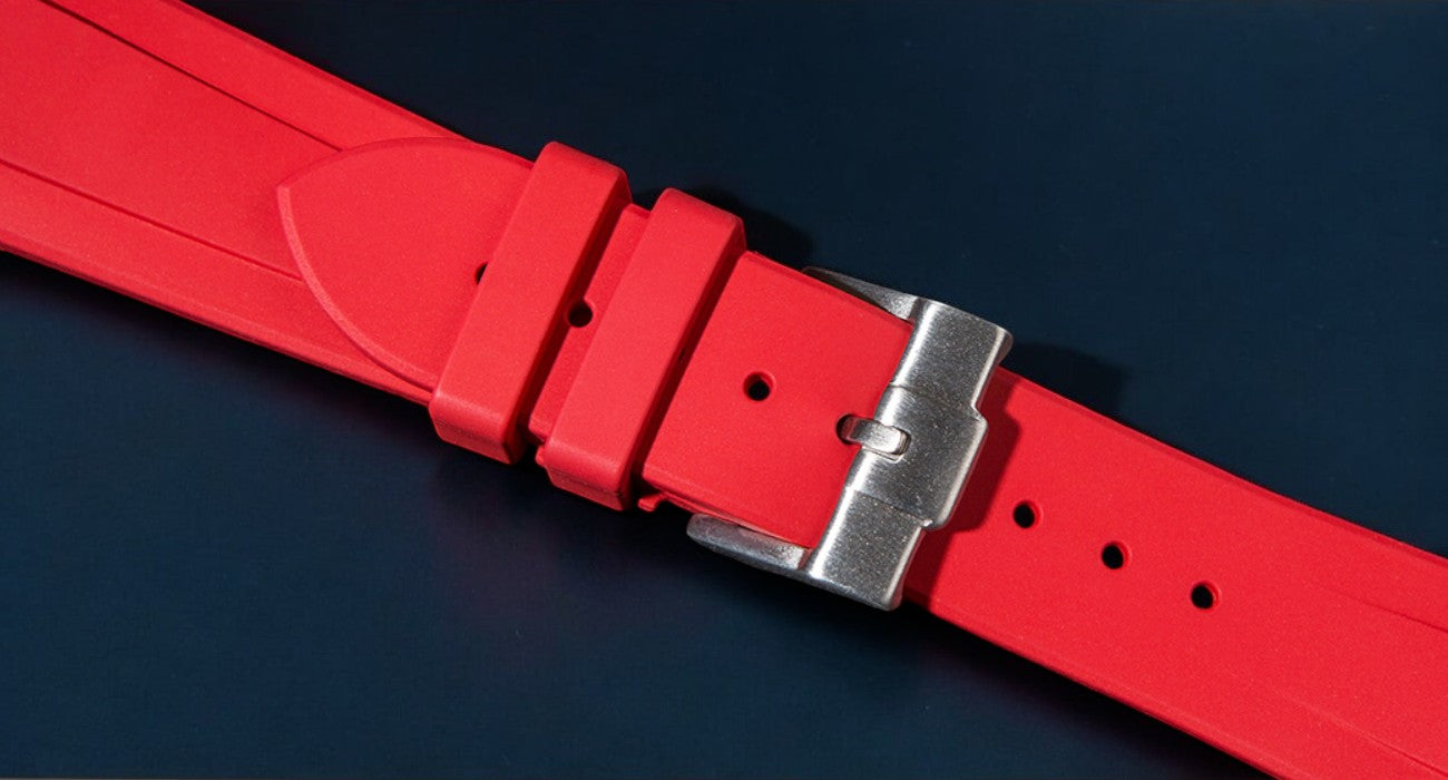 Made from vulcanized FKM rubber, the highest quality rubber strap material available. FKM rubber's exceptional chemical stability translates to unparalleled durability, resilience, & colorfastness, while its resistance to aging & weathering ensures longevity. Most importantly, it is anti-dust.